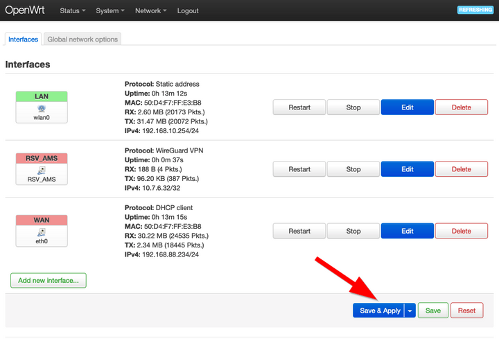 9. Нажмите кнопку «Save & Apply» и перезагрузите роутер.