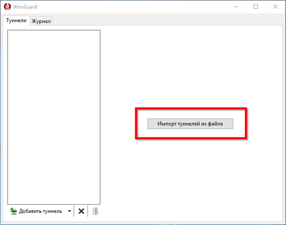 3. Откройте приложение WireGuard и нажмите «Импорт туннелей из файла».